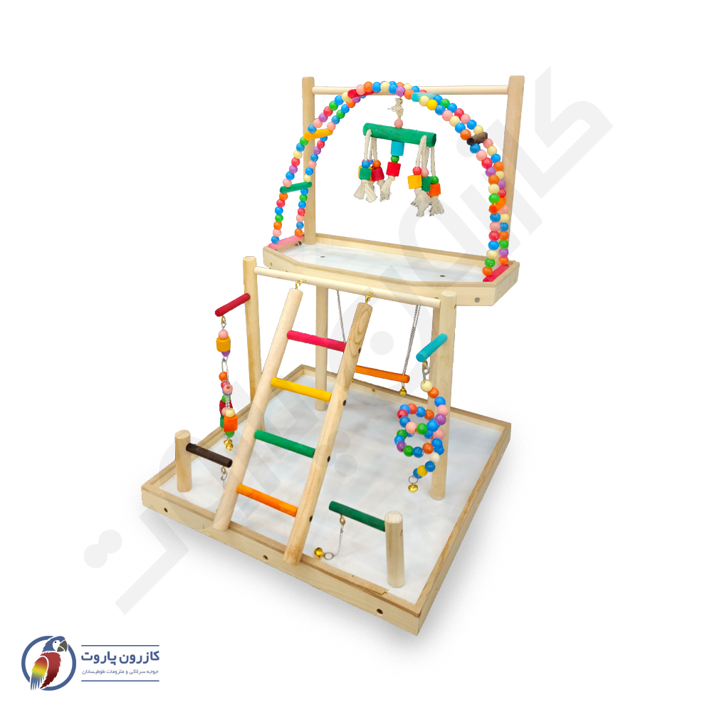 یک پک کامل از فضای استاندارد بازی برای طوطی خودتان داشته باشید،شهربازی ها با داشتن ابعاد و شرایط مناسب لذت بودن در کنار پرنده را بیشتر میکند.زیبایی و فرم منحصر به فرد و در عین حال حس شادی که این شهربازی ها دارند باعث سرگرمی بیشتر شما و پرنده میشود.شهربازی شماره 1دارای فضایی از نردبان،آویزهای متنوع، زنگوله ها،فرم چیده مان و طراحی و ستون های نگه دارنده است که یک پک کامل برای بازی پرندگان شما را فراهم میکند.این فضای بازی دارای ابعاد کف 42cmدر42cm و ارتفاع 57cm است که برای اکثر طوطیسانان مناسب است.